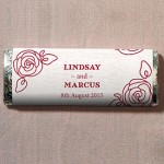 Ogni bigliettino o etichetta riporta, oltre al disegno delle rose rosse anche i nomi degli sposi e la data delle nozze, un’idea carina, non trovate?