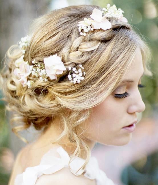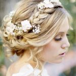 La treccia a corona è un’acconciatura da sposa molto di moda negli ultimi anni. Si adagia, appunto, alla corona della testa e ha la funzione di un cerchietto. I fiori si possono adagiare tutto intorno alla treccia e sul raccolto.