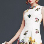 Abiti corti per cerimonie tanto eleganti quanto informali, vestiti sopra il ginocchiano che dimostrano quanto ci si senta a proprio agio in quei panni e con quella determinata compagnia. Lo stile è quello ricco e barocco tipico del brand, dai disegni floerali a quelli che ricordano pavimenti e mosaici siciliani.