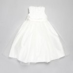 In vita gli abiti possono essere completati con una fascia in raso bianca o colorata. Sono tutti abitini deliziosi, alcuni anche con decorazioni di perline, perfetti per le piccole damigelle, ma non solo.