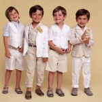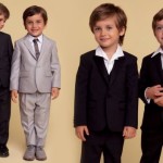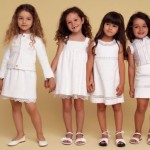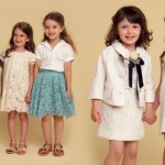 Ancora bianco per la serie in bouclé, con il micro tailleur con giacca Chanel e bottoni oro, abitini smanicati, con nido d’ape e inserti ricamati e camicie in organza portate con gonne ancora una volta in bouclé. I piccoli principini invece vestono completi scuri, in blu, nero e grigio, con la classica camicia bianca portata sbottonata, oppure con cravatta, da vero piccolo Lord, oppure gilet e bermuda o giacca e pantalone, nelle nuance naturali e decisamente più estive e informali.