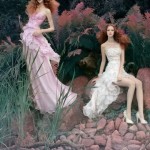 Sono le creazioni di Alena Goretskaya, stilista russa, che ci catapulta direttamente nelle foreste incantate degli Elfi e delle fate, dove donne dalle fluenti chiome rosso fuoco, portano abiti da sposa leggeri come nuvole, ma con corpetti strutturati che mettono in risalto il decollté per poi avvolgere il corpo in morbide gonne scivolate, dove si arrampicano tralci di fiori o dove è proprio la gonna che è fatta di petali di organza.