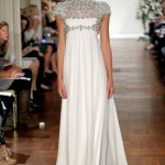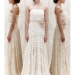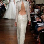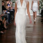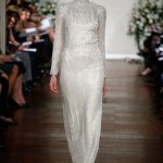 Ed è proprio quello che è sceso in passerella a New York, una collezione Old Style, a tratti anni ’30, fatta di abiti in satin con particolare attenzione alla schiena, messa in risalto da incroci di tessuto e giochi di trasparenze con pizzo che cela vezzosamente la pelle. L’abito tunica taglio impero, si veste di argento con una pioggia di applicazioni in rilievo che arricchiscono il decollté. Lo stesso argento si posa sulle spalle dal disegno squadrato nell’abito semplice. La semplicità non è mai banale, gli abiti scivolati, il 99% della collezione, sono sempre resi unici da dettagli in pizzo, tulle con applicazioni e ricami preziosi. Le gonne ampie non mancano, ma sono misuratamente vaporose e mai si sconfina nell’abito troppo ricco.