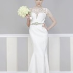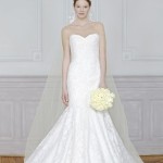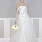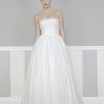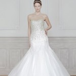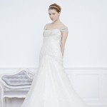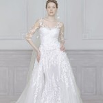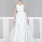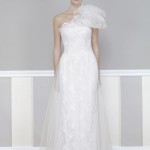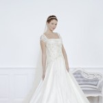 Abiti monospalla con doppio strato in tulle decorato e maxi sbuffo su un lato, con gonne ampie e corpetti strutturati, con l’aggiunta di un piccolo inserto di leggero pizzo, o di una micro cintura con fiocco che segna il punto vita, leit motiv di una parte della collezione, che ritroviamo su abiti in organza e satin con gonna dai volumi generosi. E ancora abiti a sirena “puliti” o ricamati e illuminati da cristalli, quei cristalli che formano spalline preziose, che decorano il decolleté o che si posano a pioggia dal corpetto alla lunghezza dell’abito. Uno stile classico, ma allo stesso tempo giovane e vezzoso.