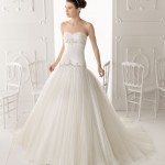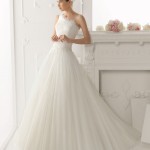 Di grande effetto nella collezione di abiti da sposa 2014 di Aire de Barcelona sono i dettagli, in particolar modo le decorazioni in pietre preziose e i merletti che impreziosiscono soprattutto sui corpetti che spesso lasciano la schiena nuda, per un look molto sensuale ma allo stesso tempo giovane e raffinato.