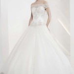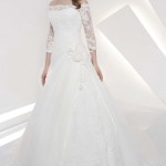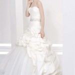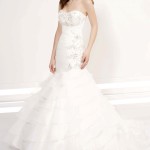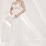 Nella collezione di Radiosa c’è anche il pizzo, il tessuto per eccellenza degli abiti da sposa 2014, ma qui impreziosito da piccole decorazioni in swarovski e perline colorate che lo rendono ancor più prezioso e di impatto.