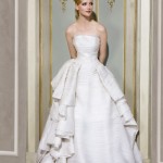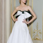 Veli di tulle rendono l’abito una nuvola di sogno componendo anche lo strascico. Onde di tessuto, e fiocchi adornano la sposa in colori che non sono solamente il candido bianco. CI sono spruzzate di nero, ma anche interi abiti realizzati con stoffe dalle tante tonalità, quasi che fossero state immerse in una mescolanza di colore con nuance differenti.