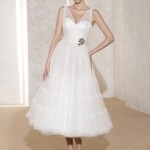 La forma ricorda vagamente il cuore conferendo alla sposa un’aria romantica e unica. Se il corpetto fascia il busto della sposa la gonna può anche essere molto ampia e arrivare a terra, come pure terminare all’altezza del polpaccio in un modello sicuramente più moderno.