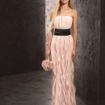 La nuova collezione di Vera Wang ospita abiti scivolati e ampi decorati con fusciacche da legare in vita e arricciature che accompagnano il corpo e la scollatura, elementi che danno vita e carattere a tutti gli abiti della linea.