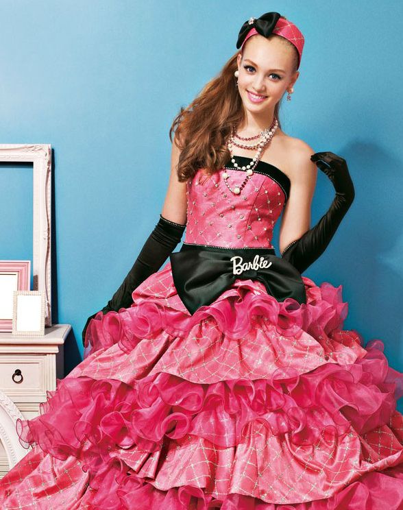 barbie-bridal-pink-black-wedding-dress-2013-ruffle-skirt