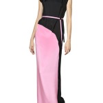 Un abito in shantung di seta, con leggeri drappeggi in vita, portato con un bolerino che copre appena le spalle, coordinato al colore e al tessuto in un bel rosa nude, ma realizzabile in altre numerose nuance. Un tocco di nero, che ricordiamo è consentito se inserito in una fantasia o abbinato ad altro colore, come in questo caso, che va a completare un gioco bicolor con un rosa. L’abito in seta è di Roksanda Ilincic. Sconsigliato per mamme un pò sovrappeso, l’abito plissettato di Black by Komarov, mentre più facile da portare il tre pezzi di ispirazione anni ’20 grigio perla lavorato.