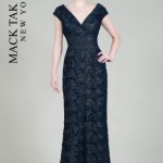 Un elegantissimo blu notte per l’abito scivolato con rouches effetto pizzo e fascia sotto il seno e un color melanzana per l’abito in taffetà di seta, con decolletè a barca e motivo drappeggiato che crea un movimento dal bustier alla gonna.