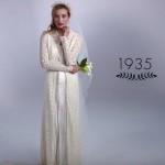 In base al decennio l’abito da sposa mostra le caratteristiche essenziali delle tendenze moda del periodo, dai lunghi guanti in seta del 1915 fino alle maniche a palloncino degli abiti da sposa anni ’80, per finire con il pizzo e le linee a sirena tipiche degli ultimissimi anni e degli abiti da sposa 2015. ovviamente musica, velo, scarpe e persino il bouquet si adeguano ai tempi, cambiando in base al periodo storico descritto. In soli tre minuti potrete ammirare 100 anni di storia della moda wedding.
