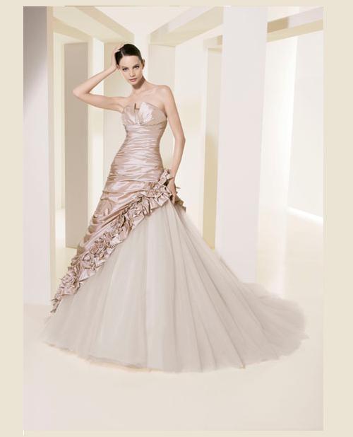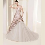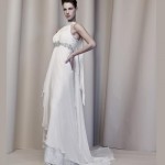 Il raso e la morbida duchesse, nelle tonalità dell’avorio, restano fedeli nelle gonne di stile classico e pur sempre attuali e di classe che richiamano lo stile principesco della Kate di oggi e dell’elegante Grace Kelly di ieri, con pregiato pizzo rebrodè nel corpino. Lo stile scivolato e impalpabile dello chiffon modella la sposa evanescente e sempre attuale delle antiche vestali romane.