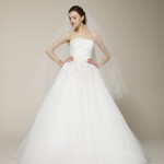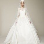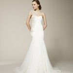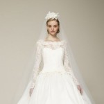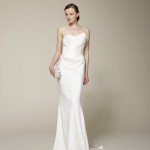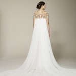 Non mancano i modelli a sirena che disegnano la figura per poi allargarsi sul fondo e gli abiti scivolati per chi non ama osare e preferisce la sobrietà di un abito quasi da haute couture da sera piuttosto che da gran cerimonia. Particolare l’abito con mantello applicato sulle spalle con motivo nido d’ape ricamato.