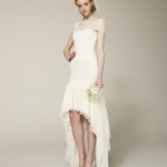 La sposa Marchesa porta abiti asimmetrici, con la schiena nuda impreziosita dal pizzo e ama gli abiti corti, ancora una volta che giocano con le asimmetrie. Ma è il lungo il cavallo di battaglia di Marchesa, quello con la gonna vaporosa, dove ci si perde in una nuvola di tulle e dove bustier lavorati con inserti ricamo e drappeggi artigianali incorniciano il decollté della sposa.