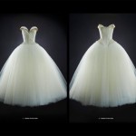 L’unica creazione corta è una nuvola di organza, dove i drappeggi si rincorrono con motivi a sbuffo, impreziositi da un’applicazione gioiello sul fianco e da un corpetto strutturato, fatto di fasce che si sovrappongono, con una decorazione gioiello sul decolleté. Gli abiti di Haute Couture firmati Rubin Singer sono stati indossati da celebrità del calibro di Glenn Colse, Beyoncé e Heidi Klum. La collezione 2014 è disponibile in esclusiva da Kleinfeld e Neiman Marcus.