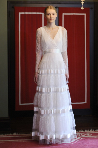 NEW YORK, NY – APRIL 19: A model walks the runway during the Temperley 2014 Bridal Spring/Summer collection presentation at Gramercy Park Hotel on April 19, 2013 in New York City. (Photo by Fernanda Calfat/Getty Images)