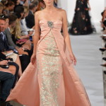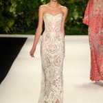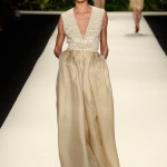 La maggior parte dei capi che hanno sfilato a New York sono abiti da cerimonia, di ispirazione anni ’50, con gonne a ruota e colori accesi, perfetti per le damigelle. Naeem Khan, un altro re dei red carpet internazionali, va in scena una vera e propria sposa, che come da tradizione chiude la passerella e lo fa con un abito con scollo madonna, con decolleté ricamato in rilievo. Peccato, va detto, che la modella sia decisamente scheletrica e non rende giustizia all’abito.