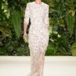 Continua la settimana della moda a New York, e giorno dopo giorno vanno in scena le collezioni donna primavera estate 2014 e noi siamo pronte a catturare gli abiti dalle sfilate che potrebbero essere perfetti per accompagnarvi all’altare in grande stile. Nella collezione di Oscar de la Renta, maestro anche nel mondo bridal, molte sono le occasioni di ispirazione, come l’abito lungo avorio, fatto di pizzo macramé, il completo al ginocchio ancora una volta in pizzo con casacca e gonna e l’abito corto girocollo manica lunga ricamato.