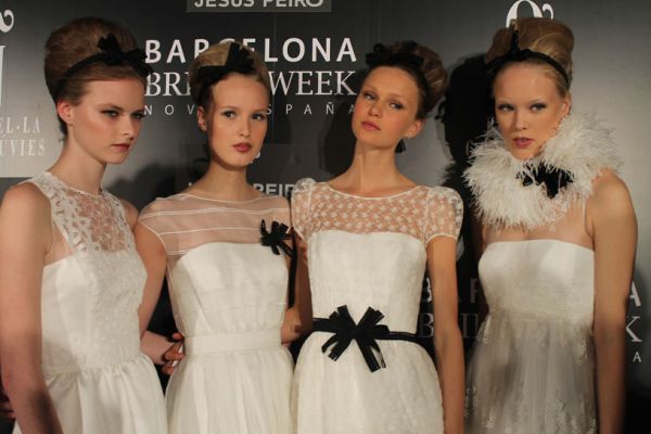 In occasione della settimana della moda sposa a Barcellona, Jesus Peirò festeggia 25 anni di attività, con una collezione strepitosa, ricca, raffinata, una delle migliori scese in passerella fino ad oggi. La collezione primavera estate 2014 opera della designer Merche Segarra, è a tratti vintage anni ’60, per passare poi ad uno stile più audace, con i corsetti “rubati” al mondo lingerie, con disegni geometrici neri su base nude, resi romantici da inserti in pizzo e fiocchi che decorano il decolleté.