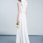 Il modello corto è semplicissimo, decolleté a-line con rouches svolazzante in fondo, mentre decisamente unico per una sposa l’abito chemisier manica corta asimmetrico, con strascico stondato. La mini collezione rispecchia lo stile e l’estro di Victor & Rolf, un debutto timido, con soltanto sei modelli, che non ci lasciano certo indifferenti.