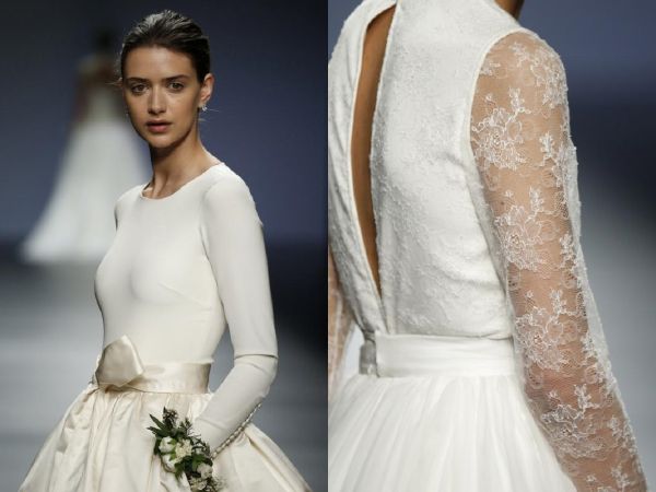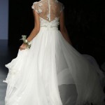 Se invece preferite un look più provocante Cristina Tamborero vi invita a scegliere una profonda scollatura sulla schiena, ma se siete spose bon-ton gli abiti con applicazioni e trasparenze sulle maniche renderanno piacevolmente unico il vostro look da matrimonio. Piccoli fiori bianchi, ad esempio, rendono ancor più romantico un abito che nasce già per coronare nel migliore dei modi un sogno d’amore, con maniche corte e bustino in pizzo vedo/non vedo. I vestiti da sposa Cristina Tamborero si adattano a qualsiasi tipo di fisicità e di personalità.