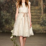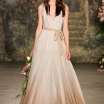 Questi abiti da sposa 2016 Jenny Packham si ispirano al sogno romantico descritto dai grandi artisti del passato, in particolar modo quelli narrati da Shakespeare. La stilista londinese, infatti, per rafforzare quest’atmosfera ha fatto sfilare le sue spose su una passerella molto romantica, decorata come un giardino e decorata da rose di tutte le tonalità, del fuxia e dell’avorio. L’intera collezione celebra la natura intesa come espressione artistica e la sposa sembra essere una ninfa dei boschi che si muove leggera tra i fiori, con la sua gonna fluttuante e i suoi capelli morbidi e profumati.