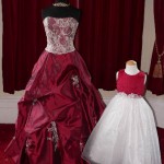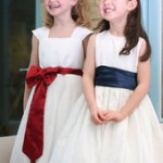 Le piccole damigelle possono essere vestite di bianco e avere accessori colorati, come ad esempio una fascia rossa in vita, o addirittura poccono avere l’abito realizzato in due colori, come propone questa azienda.