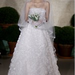Ma in mezzo a tanto bianco troviamo anche altri colori, sempre in tonalità pastello, come l’avorio, il rosa pallido, l’ azzurro ghiaccio, e non solo. De la Renta ha creato non solo abiti in pizzo, classici ed eleganti, ma anche vestiti asimmetrici e voluminosi, fantasie curiose per le spose moderne.