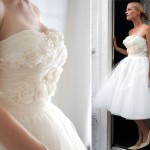 L’abito da sposa classico è lungo fino a terra, copre le scarpe e a volte ha anche lo strascico. Qui e là si vedono invece abiti da sposa corti al ginocchio. Fanno capolino in mezzo alle collezioni e così mi sono domandata, ma a chi è venuta l’idea?