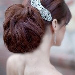 Sono gioielli di bigiotteria però molto realistici. L’accessorio per capelli più utilizzato però è quello di stoffa bianca che rappresenta fiori. Ne trovate alcuni nella gallery. Ce ne sono di differenti misure e apposti ai lati della pettinatura creano un effetto romantico.