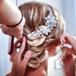 Acconciatura sposa, capelli raccolti e accessori preziosi