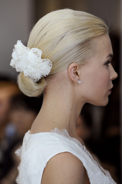 20 Giugno 2013 Acconciature capelli sposa 2014, trend, 3 NEW YORK, NY – APRIL 21: A model walks the runway during the Carolina Herrera 2014 Bridal Spring/Summer collection show on April 21, 2013 in New York City. (Photo by Fernanda Calfat/Getty Images)