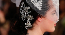 20 Giugno 2013 Acconciature capelli sposa 2014, trend, 2 NEW YORK, NY – APRIL 22: A model walks the runway during the Oscar de la Renta 2014 Bridal Spring/Summer collection show on April 22, 2013 in New York City. (Photo by JP Yim/Getty Images)