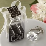 Grazioso anche l’anello finto di diamanti portachiavi da regalare alle vostre damigelle d’onore e amiche più care, da sostituire, se volete, con un gancio appendiborsa da utilizzare anche nel giorno del vostro matrimonio.