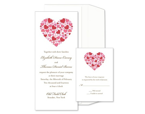 Assieme agli inviti ci sono poi fogli e buste per scrivere a chi è intervenuta per ringraziarla. Il mio tema preferito è quello con i cuori in rosa e rosso formati da tanti cuoricini più piccoli. Lo trovo delizioso e romantico.