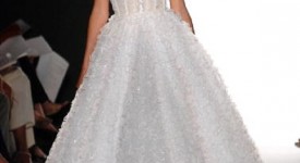 NEW YORK, NY – SEPTEMBER 13: A model walks down the runway at the Oscar De La Renta Spring 2005 fashion show during the Olympus Fashion Week Spring 2005 at Bryant Park September 13, 2004 in New York City. (Photo by Fernanda Calfat/Getty Images)