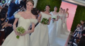 NEW YORK, NY – APRIL 11: Models walk the runway at the Oscar De La Renta Spring 2015 Bridal collection show on April 11, 2014 in New York City. (Photo by Slaven Vlasic/Getty Images)