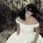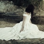 Ero a caccia di tutt’altro genere di fotografie, quando mi sono imbattuta in questi originalissimi scatti. La sposa, o modella vestita da sposa, è ritratta nei pressi di un lago, con un’espressione in realtà tutt’altro che felice.