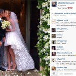 Con queste parole Alessia Marcuzzi ha annunciato sul suo blog di essersi sposata in una location che rimane ancora segreta, ma che molti localizzano in Francia. La presentatrice e blogger indossava un abito Giambattista Valli, corto con un lungo velo in pizzo. Gambe scoperte e tanta felicità dunque per la showgirl che bacia con passione il suo attuale marito.
