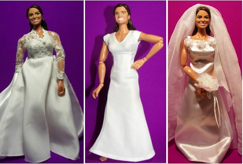 Anche l’abito di Kate è ormai diventata una sindone: benchè sia un classico come milioni di abiti nuziali, molti hanno rivendicato l’originalità del modello, mentre gli abiti copiati made in China stanno per invadere il mercato del wedding dress. L’ultima arriva dagli Stati Uniti d’America dove gli abiti di Kate e Pippa Middleton sono diventate delle bambole.