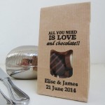 Tutti amano la cioccolata e questo a noi sembra un buon motivo per regalarla alle proprie nozze. Fate realizzare dei sacchettini personalizzati, con i vostri nomi e la data delle nozze, riempiteli con i vostri cioccolatini preferiti e il gioco è fatto!