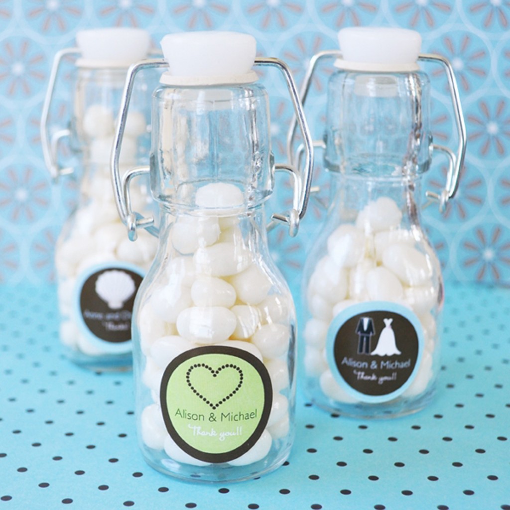 Si tratta di una bottiglietta dalla forma particolarmente curiosa, carina ed estetica alla quale viene incollata un’etichetta personalizzata con qualche disegno o decoro oltre al nome degli sposi e alla data di matrimonio. All’interno dovete porvi dei confetti o delle caramelle.