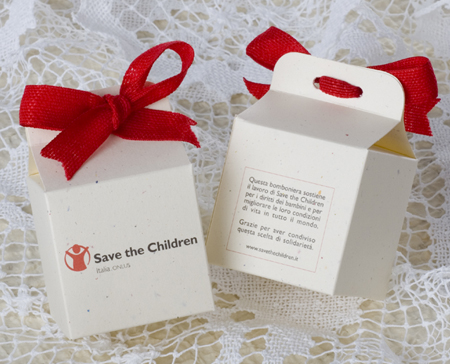 Ci sono per esempio le bomboniere solidali di enti quali Unicef, Emergency, o Save the Children che rendono il vostro un gesto generoso e che aiuta quelle persone e bambini che hanno bisogno. Acquisterete delle bomboniere e il ricavato sarà utilizzato per comperare medicinali, aiutare i piccoli e quant’altro.