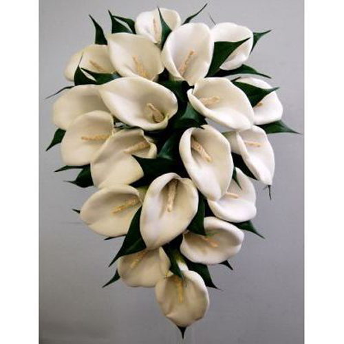 I modelli che vi propongo oggi sono poi realizzati con fiori poco comuni e molto particolari. Il primo è composto di calle bianche, un fiore elegante e classico. Il bianco è il colore che le spose preferiscono, ma invece delle classiche rose o dei tulipani, ecco le calle.