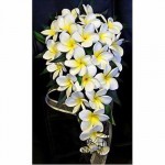 L’altro bouquet, ancor più particolare è in due colori, proprio per la caratteristica del fiore che lo compone: il frangipane. Questo si che è un fiore insolito, poco utilizzato per i bouquet. In questo tipo di composizioni è perfetto.