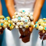 Avete mai pensato a farvi fare un bouquet con vecchi bottoni vintage coordinato a quello delle damigelle d’onore e alle boutonniere di sposo e testimoni? L’idea è assolutamente orginale. La sposa ha un bouquet realizzato in bottoni bianchi con qualche spruzzo di colore, le damigelle, per contrasto ce l’hanno all’incontrario. Lo sposo ha una boutonniere sempre di bottoni, lo stesso i suoi testimoni.
