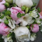 Potete ricoprirla tutta oppure solamente in parte. Se i fiori sono bianchi e ricprite l’impugnatura con del natro bianco restano solamente le foglie a fare da contrasto, però il bouquet avrà un’aria eterea ed elegante. Peonie di altri colori lo rendono meno elegante, ma sempre alla moda e romantico, altrimenti si possono aggiungere delle fresie.
