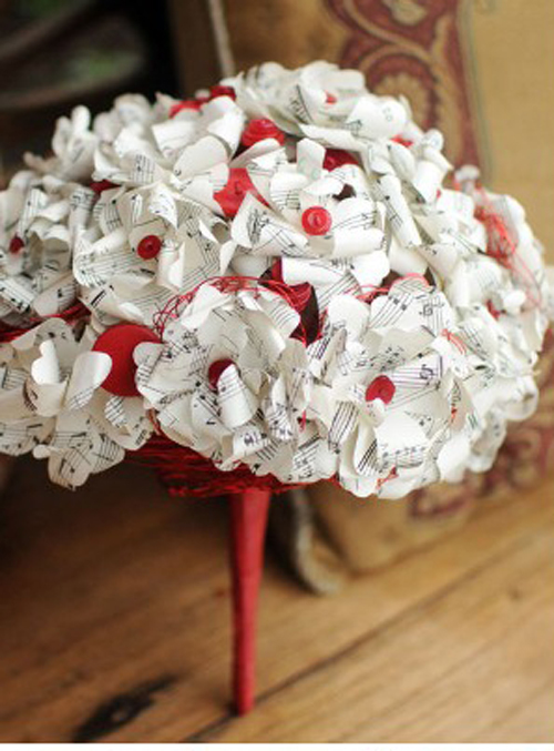 Ci sono fiori con le note musicali e altri semplicemente colorati. Le forme sono a margherita, a rosa e non solo. Se la carta poi è leggera, per esempio come la carta velina, anche se è meno rigida quindi rimane meno ferma, la sua morbidezza consente una maggior possibilità di utilizzo nelle forme.